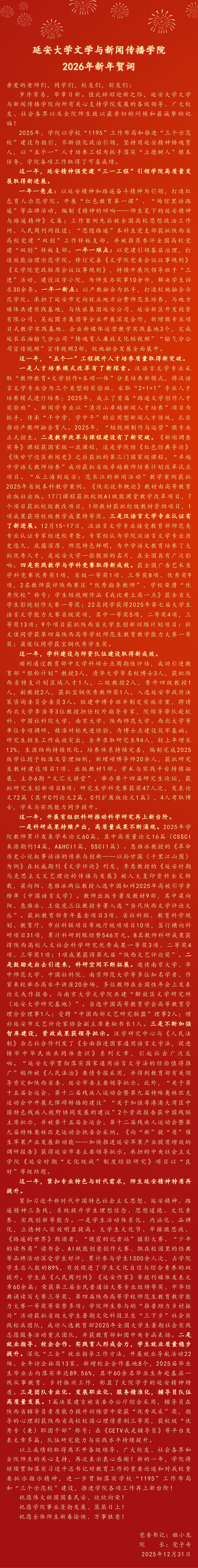 文学与新闻传播学院2026年新年贺词