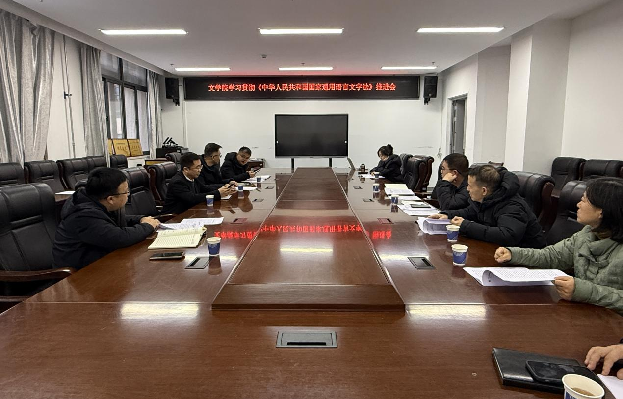 (本网讯)为深入学习贯彻新修订的《中华人民共和国国家通用语言文字法》及《教育部等七部门关于深入推进中华优秀语言文化传承发展 提高全民语言文化素养的意见》精神,切实落实陕西省省委书记赵一德同志重要批示要求,1月19日上午,文学院语言学教研室在408会议室召开专题推进会议。会议结合学院学科优势与区域文化特色,对语言学教研室及延安大学汉字研究中心后续工作作出系统部署。文学院院长党子奇、党委书记姬小龙、副院长侯业智、党委副书记张元及语言学教研室、汉字研究中心骨干教师出席会议,会议由院长党子奇主持。
