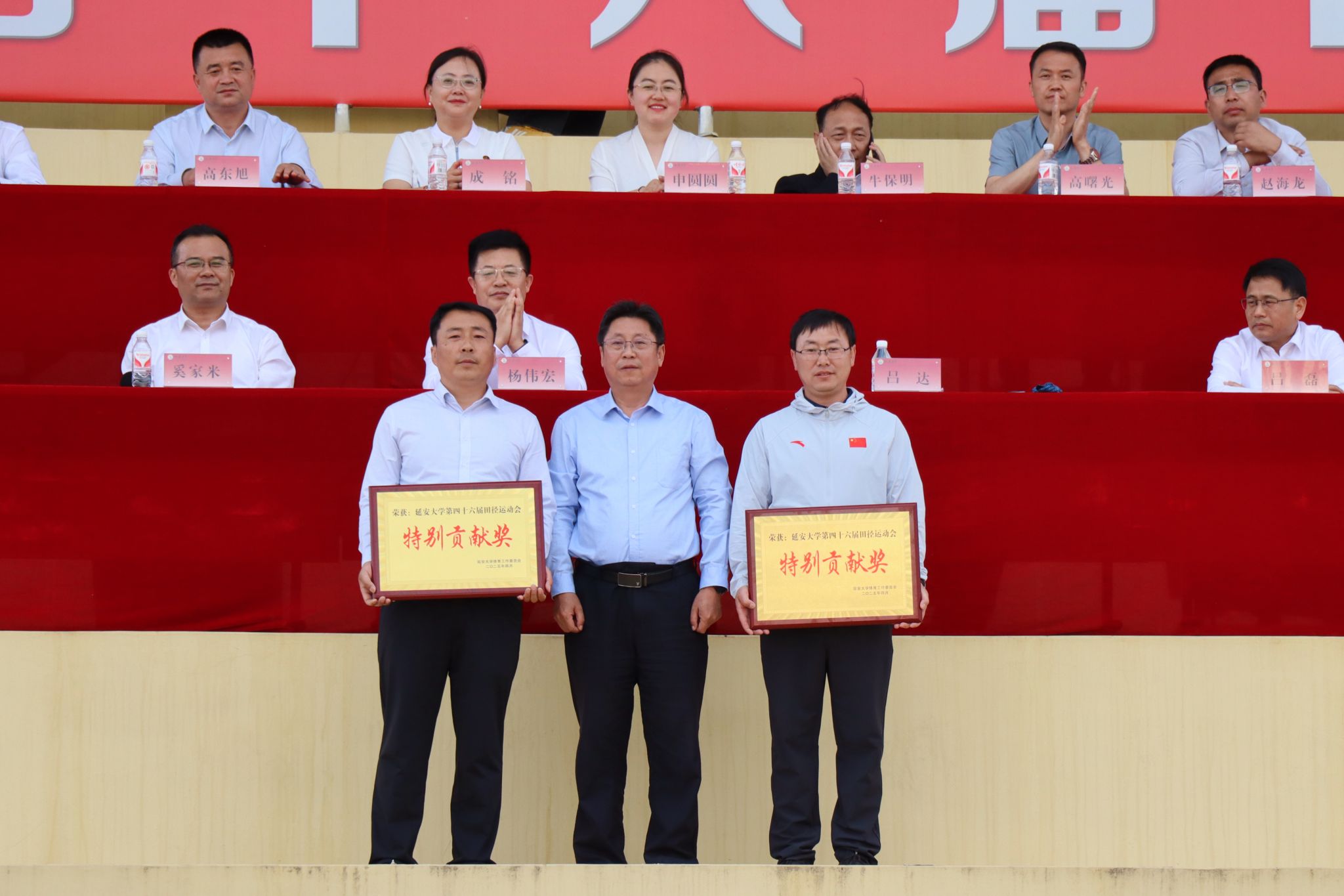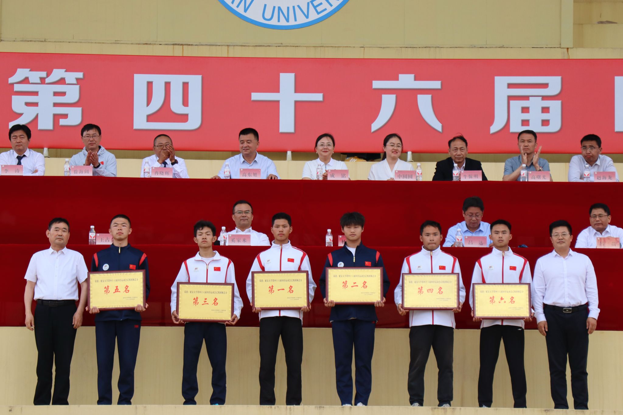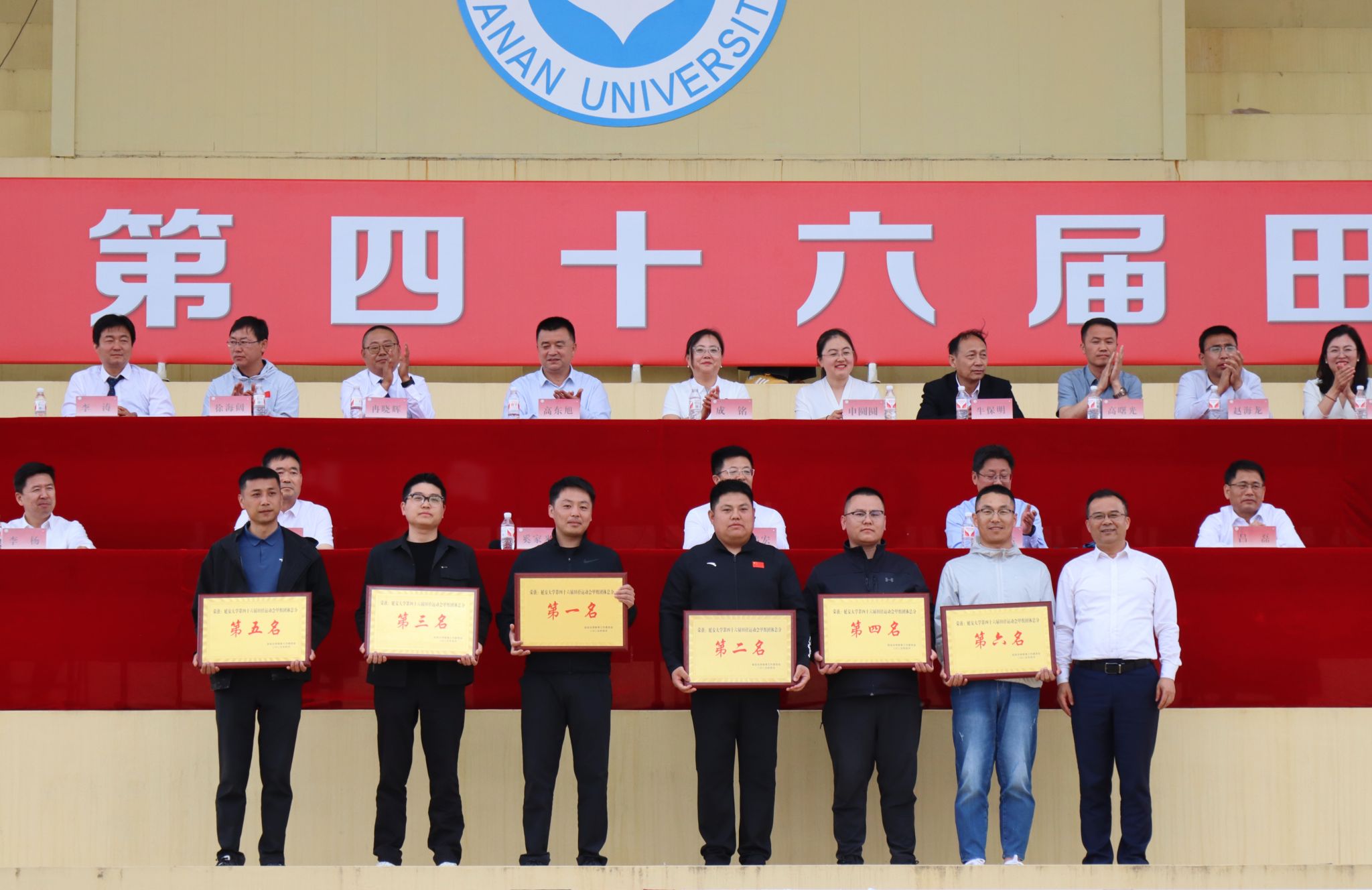 本网讯4月25日下午,我校第四十六届田径运动会圆满完成各项赛程,在新城校区体育场闭幕。校长奚家米,校党委副书记杨伟宏、王占金、吕达,副校长李杨、吕磊出席闭幕式,校体育工作委员会全体委员及各学院代表队参加闭幕式。闭幕式由第四十六届田径运动会体育工作委员会副主任委员、体育学院院长宗有智主持。