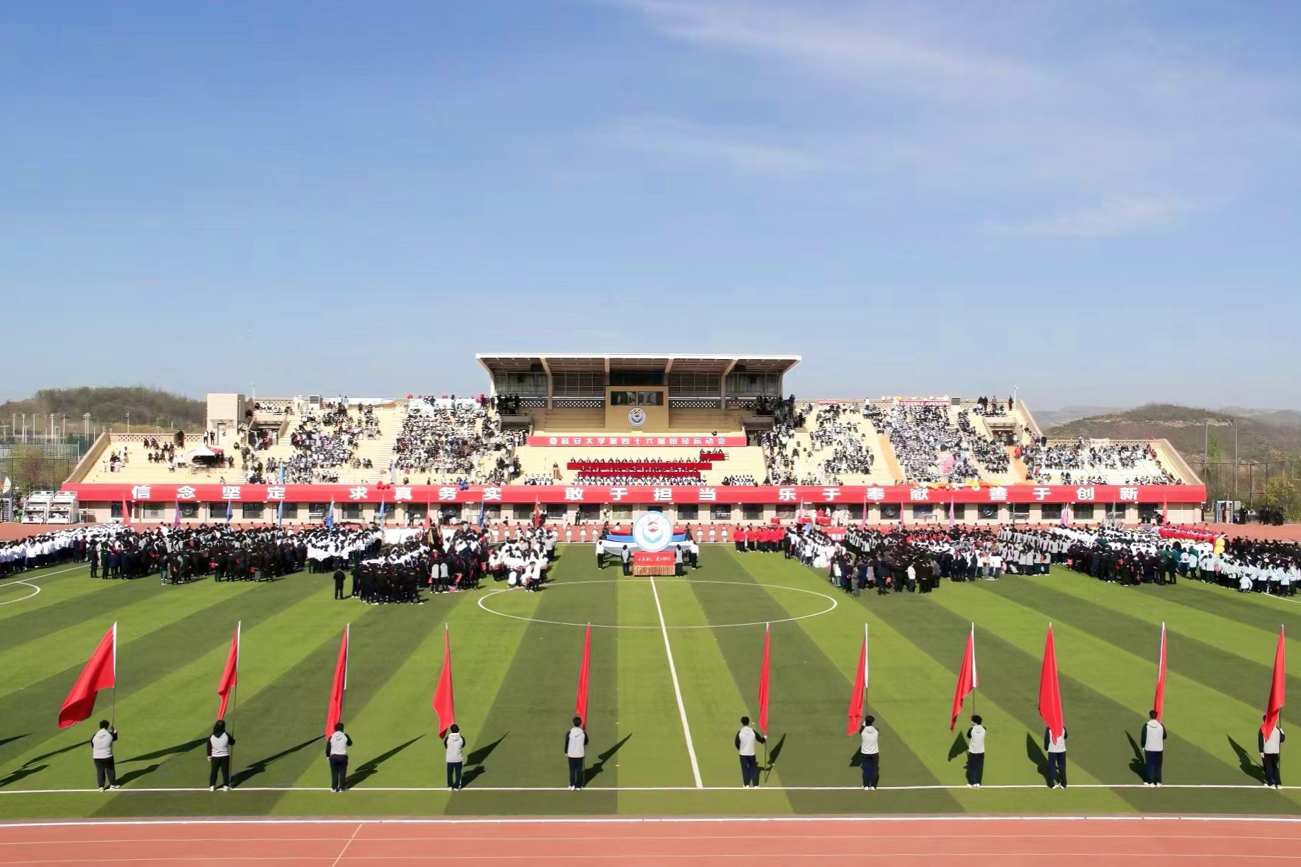 本网讯4月23日上午,我校第四十六届田径运动会在新城校区体育场开幕,校党委书记高子伟,校长奚家米,校党委副书记吕达,副校长付峰、李杨、吕磊,菲律宾巴利瓦格大学校长拉贡达,延安市体育局副局长申长良,延安市教育局副县级督学刘冰,延安市文化和旅游局副局长郭超贤,延安体育运动学校校长宗延庆,校体育工作委员会全体委员及全校20000余名师生参加了开幕式。开幕式由第四十六届田径运动会体育工作委员会副主任委员、教务处处长王进主持。