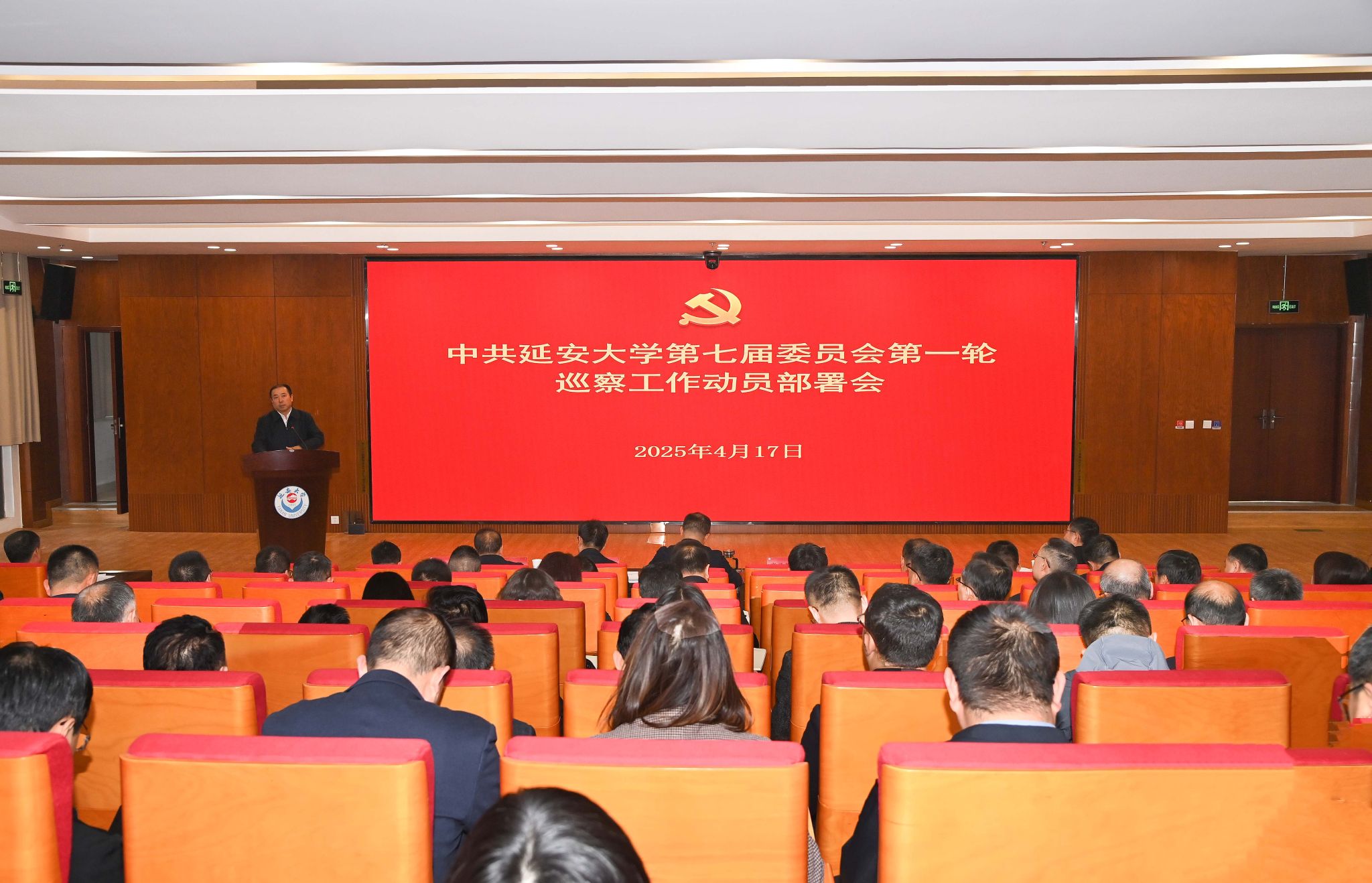 本网讯4月17日下午,延安大学第七届党委第一轮巡察动员部署会在新校区行政楼一楼报告厅召开。党委巡察工作领导小组全体成员,党委委员、纪委委员,巡察组全体工作人员,被巡察学院党政主要负责人,全校副处级以上干部参加会议。动员部署会由校党委副书记、纪委书记、省监委驻延安大学监察专员、党委巡察工作领导小组副组长王占金主持。