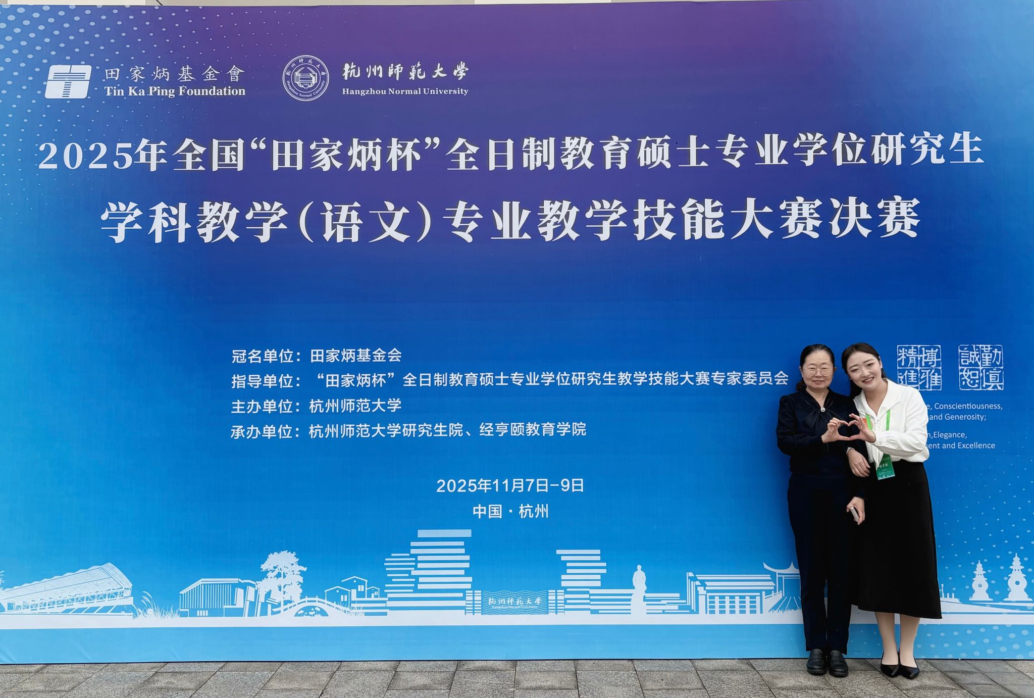 撰稿:李鹏睿 核稿:刘鑫(本网讯)11月9日,2025年“田家炳杯”全日制教育硕士专业学位研究生学科教学(语文)专业教学技能大赛决赛暨素养教育时代语文教学改革研讨会在杭州师范大学圆满落幕。我院2024级硕士研究生常鑫悦凭借扎实的文本解读能力、灵动的...
