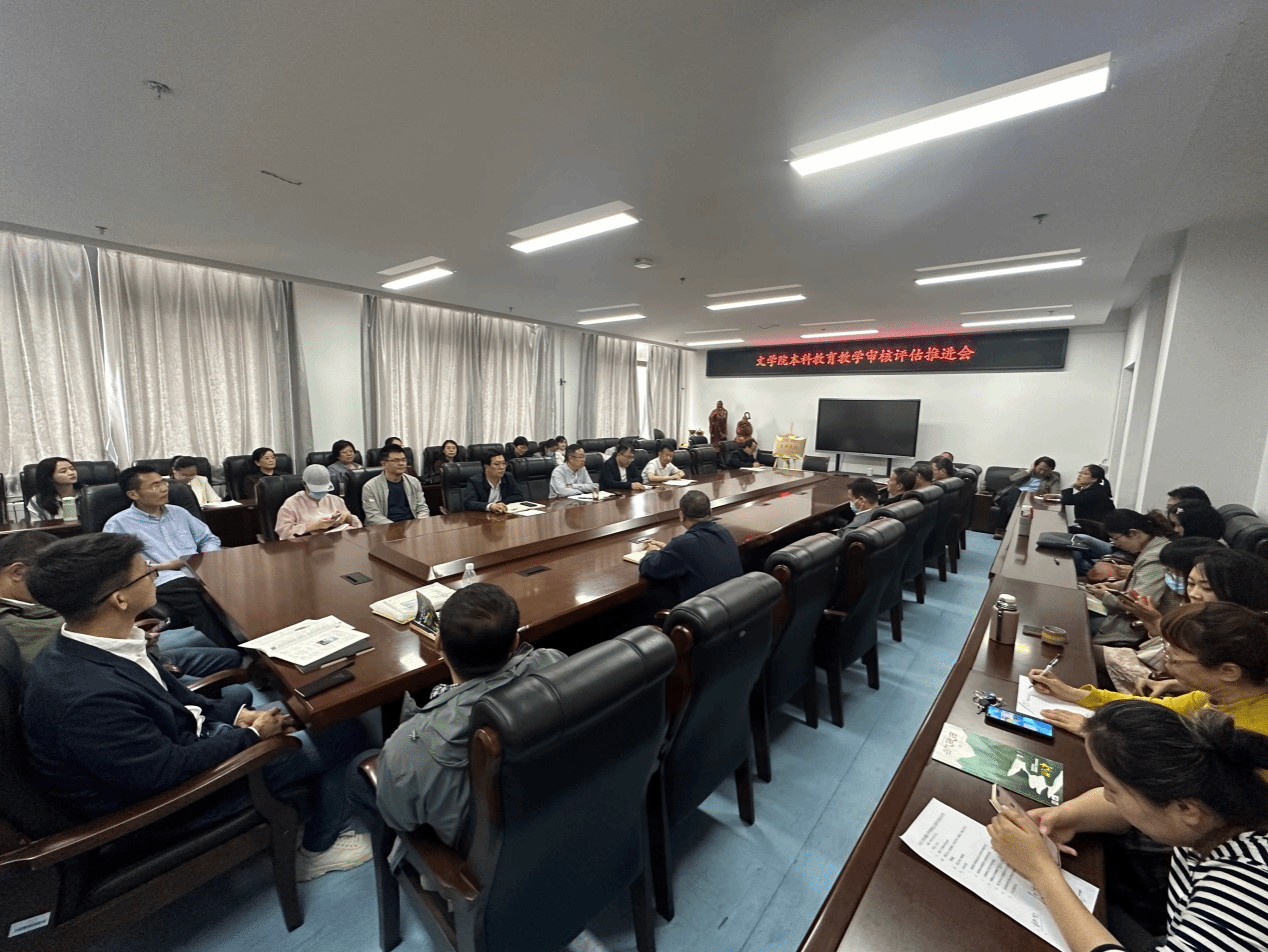 (本网讯)5月17日下午,文学与新闻传播学院在408会议室召开本科教育教学审核评估工作推进会。全体院领导班子成员与全体教职工参加会议。会议由院长王俊虎主持。