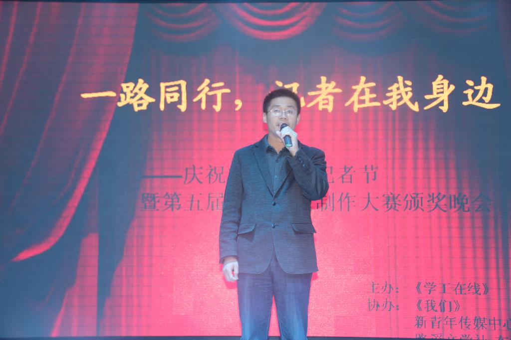 本网讯 在第15个记者节到来之际,为进一步增强校园媒体的交流互动,扩大校园媒体的影响力。11月8日晚,由学工处《学工在线》主办,新青年传媒中心、文学社和我院院报《我们》协办的第十五个记者节暨第五届新闻标题大赛颁奖晚会在大学生活动中心举办。校学工部副部长马小惠、校团委副书记任静、党委宣传部兰天峨老师以及我院新闻专业教师郭小良出席了本次晚会。应邀参加晚会的还有学校各级媒体负责人及27名获奖学生。