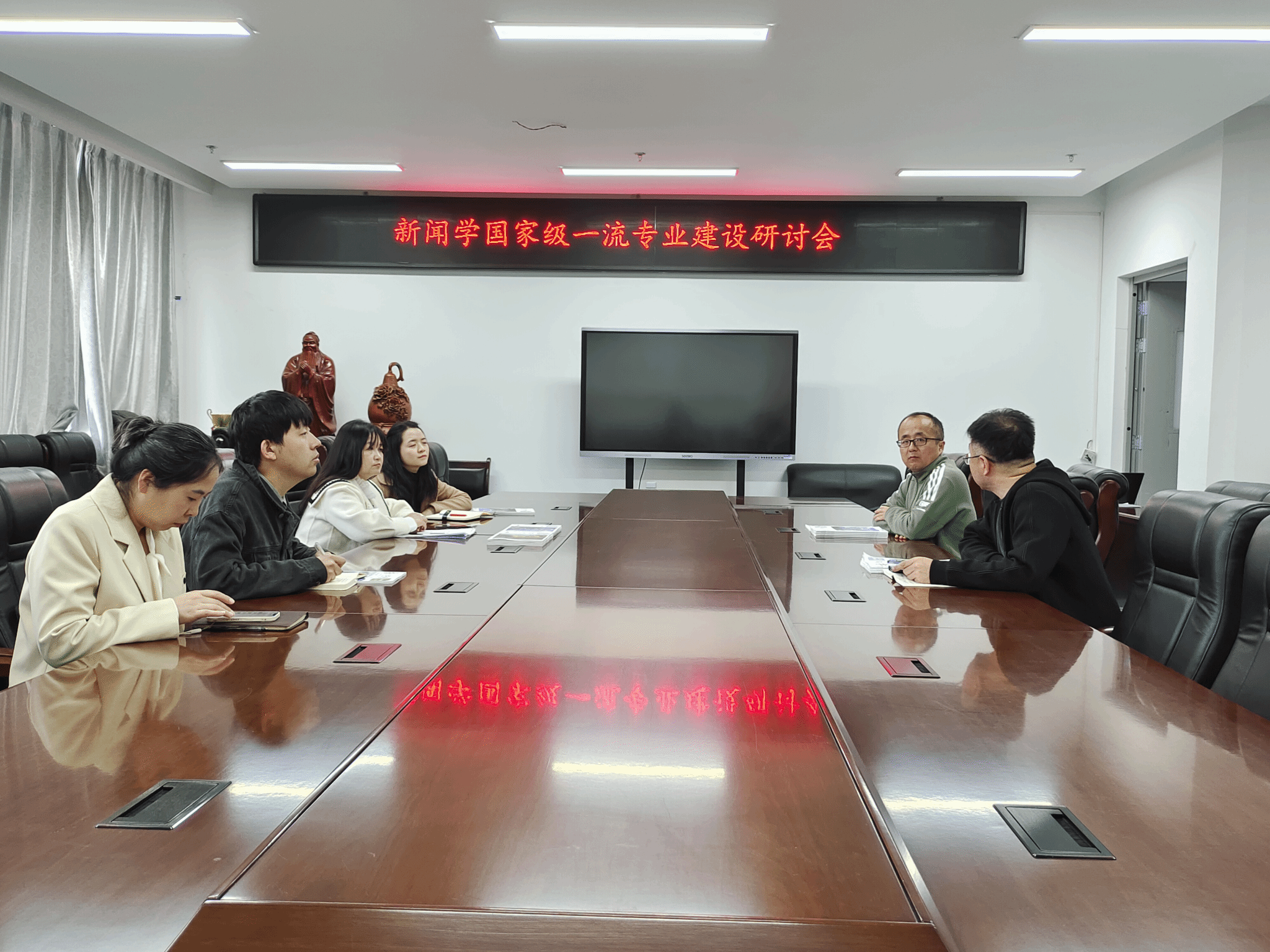 (本网讯)5月9日下午,学院新闻系举行新闻学专业国家一流专业建设研讨活动。教研室教师参加活动。
