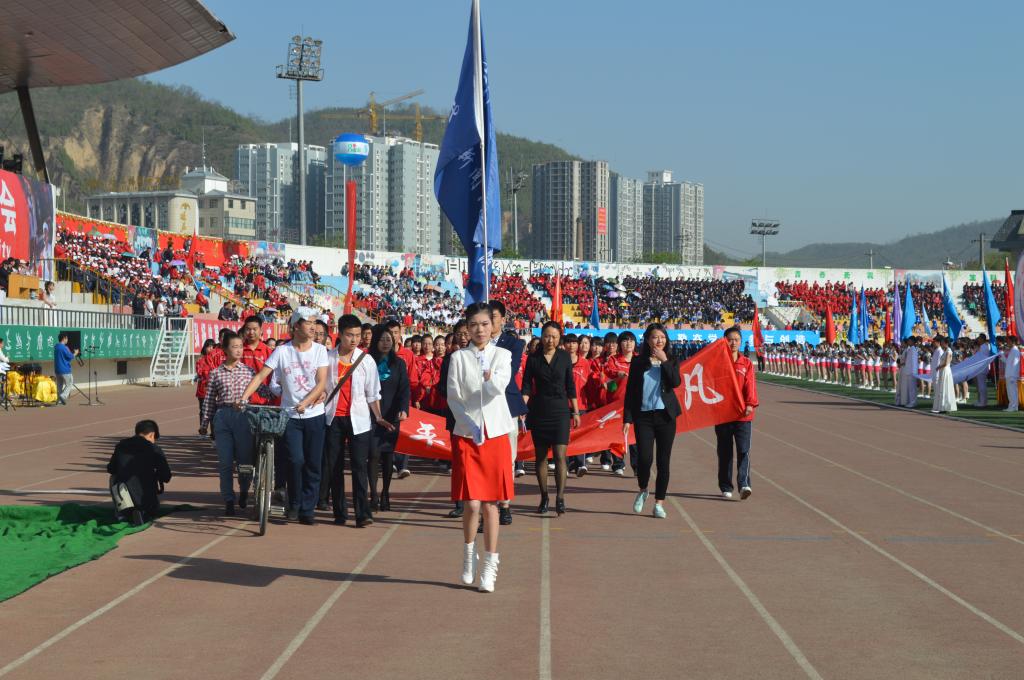 4月28日上午8时整,我校第三十九届田径运动会在田径场隆重开幕。校党委书记王亚杰,党委副书记田伏虎、吴耀,纪委书记王顺、副校长胡俊生、马勇和校体育运动委员会全体委员以及13级、14级全体师生参加了开幕式。