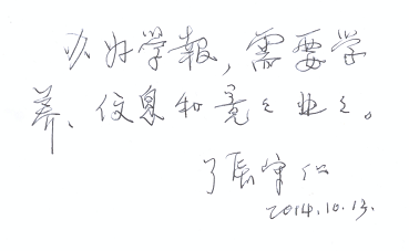 近日,中国人民大学文学院院长孙郁、《写作之夜》常务副主任岳建一等多位学者、专家为我院院报《我们》题词并进行指导、表达祝愿。