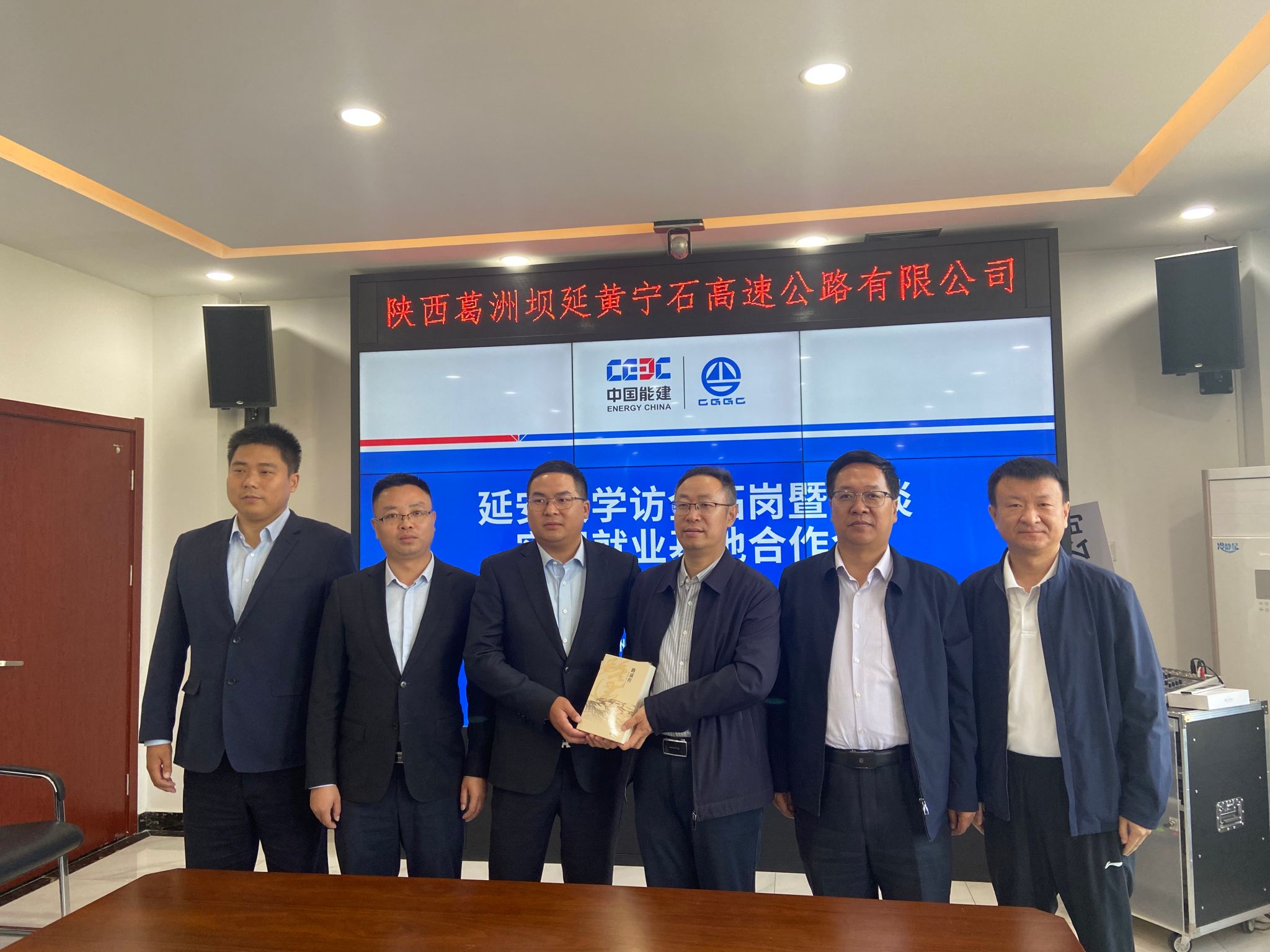 在访企拓岗座谈会上,王俊虎从延安大学、文学院的发展历史,学科建设,师资力量,人才培养,就业工作等方面做了详细地介绍,并对企业长期以来对延安大学与文学院的关注与支持表示由衷感谢,并就搭建校企人才交流与供需之间的良好平台,拓宽毕业生实习就业渠道,建立校地校企就业协作与精准对接机制提出了建议。陕西葛洲坝延黄宁石高速公路有限公司党支部书记、董事长总经理李发对延安大学文学院一行表示热烈地欢迎,并表示延安大学办学历史悠久,办学特色鲜明,毕业生在社会各界赢得了良好的口碑与声誉,真正地践行了延安精神。李发介绍了陕西葛洲坝延黄宁石高速公路有限公司发展历史、单位需求、职工职业生涯发展等,希望能与延安大学及各学院尽早建立联系,加大加深彼此间的交流与合作。会上,双方达成合作,签订实习就业基地合作协议书并授牌。