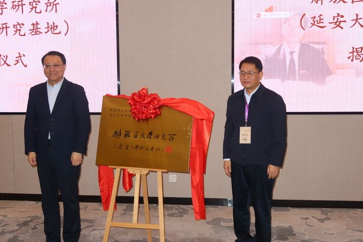 (本网讯)10月27日上午,“叶子铭与中国现当代文学学科建设”研讨会在南京大学国际会议中心召开,延安大学副校长吕磊、社会科学处处长王俊虎、文学院院长党子奇、党委书记姬小龙、副院长侯业智及学院部分学术骨干应邀出席研讨会。会上,南京大学、延安大学两校举行了解放区文学研究所(延安大学研究基地)揭牌仪式,南京大学党委副书记陈云松、延安大学副校长吕磊共同为研究所成立揭牌。该研究所为教育部人文社会科学重点研究基地南京大学中国新文学研究中心、延安大学文学与新闻传播学院共建的研究机构,研究所将充分发挥南京大学中国新文学研究中心、延安大学文学院学科优势,通过资源整合、优势互补、协同攻关,共同加强解放区文学研究与红色文化传承。