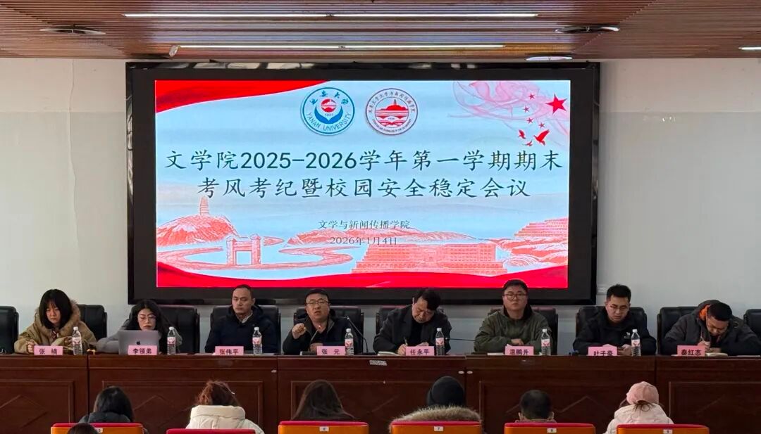 (本网讯)为严明期末考风考纪、筑牢安全防线、统筹部署近期及寒假期间的安全管理与社会实践工作,切实保障学生平安有序度过学期末关键阶段和假期生活。1月4日下午,文学院在学院201报告厅召开期末考风考纪暨寒假安全教育大会。学院党委副书记张元、思政专员任永平、教务员李领弟、全体辅导员及学生干部代表参加会议。