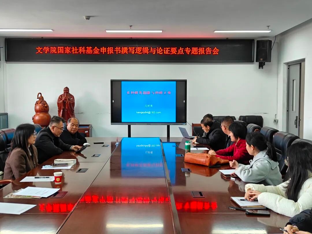(本网讯)3月19日下午,文学院在408会议室举行“高层次项目申报系列讲座(第三讲)”。鲁东大学原党委常委、副校长、校友亢世勇教授应邀作《高层次项目申报书撰写逻辑与论证要点》专题报告。党子奇教授主持报告会,学院教师骨干20余人参加。