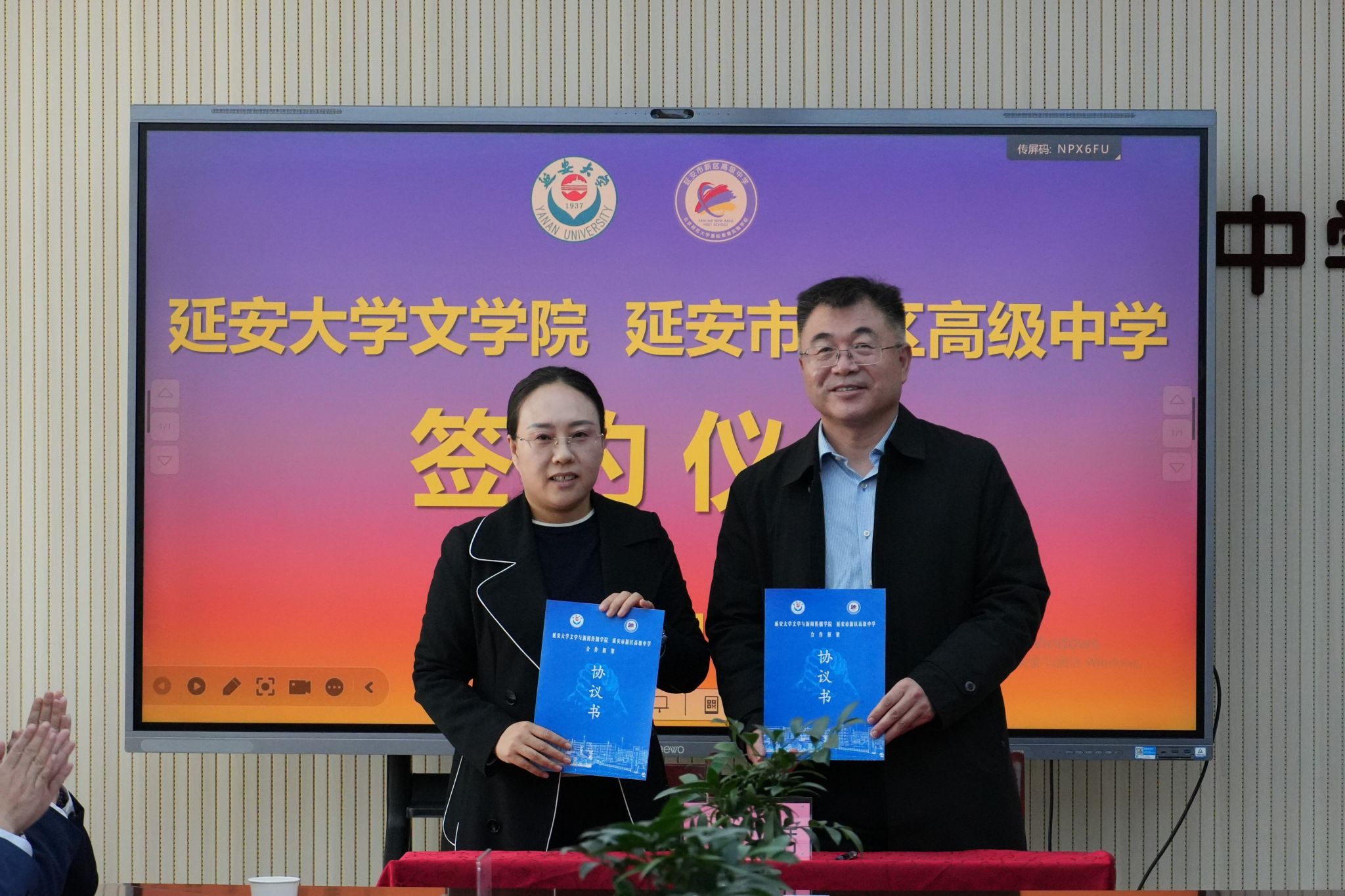 座谈最后,党子奇院长与强新霞校长共同签署了卓越中学语文教师培养的合作协议。此次座谈会的举行,标志着两校建立起长期的合作,是学院落实延安大学“三个示范校”建设战略、推动校地融合协同育人的重要举措。文学院将以此次合作为契机,推进卓越中学语文教师的培养与发展,为区域教育高质量发展书写协同育人新篇章。