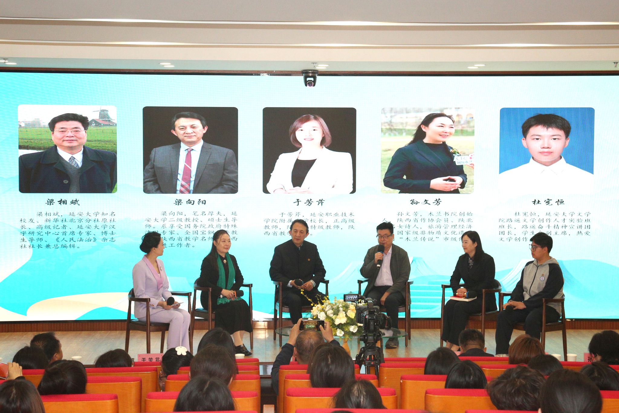 新华社北京分社原社长、高级记者、延安大学汉字研究中心首席专家梁相斌,陕西省作协副主席、延安大学文学院教授梁向阳,延安职业技术学院附小校长、特级教师于芳芹,延安市文联原主席、木兰书院创始人孙文芳,以及延安大学文学院学生代表杜宪恒作为对话嘉宾,围绕论坛主题分别从不同视角分享了思考与感悟。嘉宾们结合自身经历与具体作品,阐释经典内涵,同时分享了阅读革命文化经典的方法路径。论坛还穿插了《延安与中国青年》《红星照耀中国》等5场阅读分享。