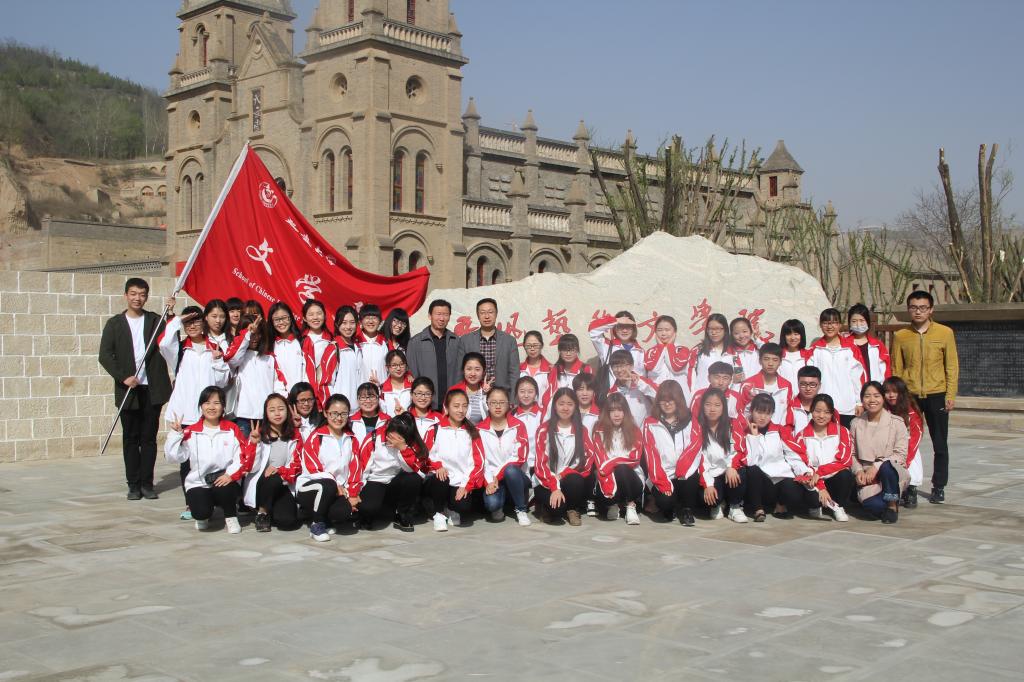(本网讯)4月18日上午,由延安鲁艺文化园区举办的“鲁艺故事进校园 校园课堂进鲁艺”双向教学启动仪式在延安桥沟鲁艺教堂广场举行,文学院汉语言文学专业50多名学生在王俊虎副院长与李萍老师的带领下参加了本次活动。
