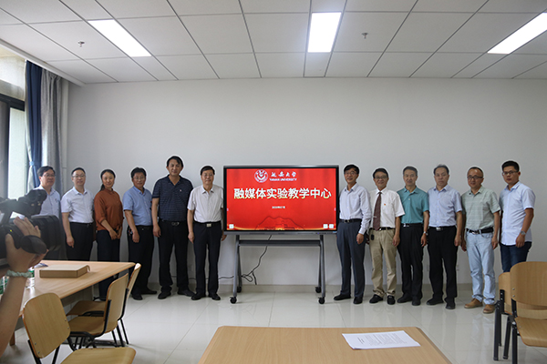 武忠远副校长在讲话中指出,融媒体实验教学中心一方面要充分利用现有设备,继续做好实验室和设备的开放使用,设置好实验室运作的规章制度,提供给学生更好的教学实验、实训环境;另一方面要做“内涵式建设”,将实验设备高效投入,让学生在实验室里能将理论和技能相结合,生产制作出高水平的融媒体产品。