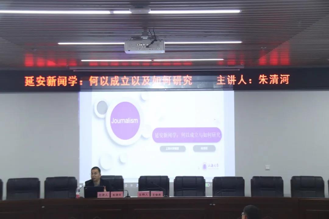 讲座中,朱清河从“延安新闻学”的提出必要性、“延安新闻学”提出的合法性、延安新闻学研究现状、既往研究不足以及延安新闻学进一步探讨与突破的空间这几个方面与同学们一起深刻探讨了关于“延安新闻学”的具体研究。