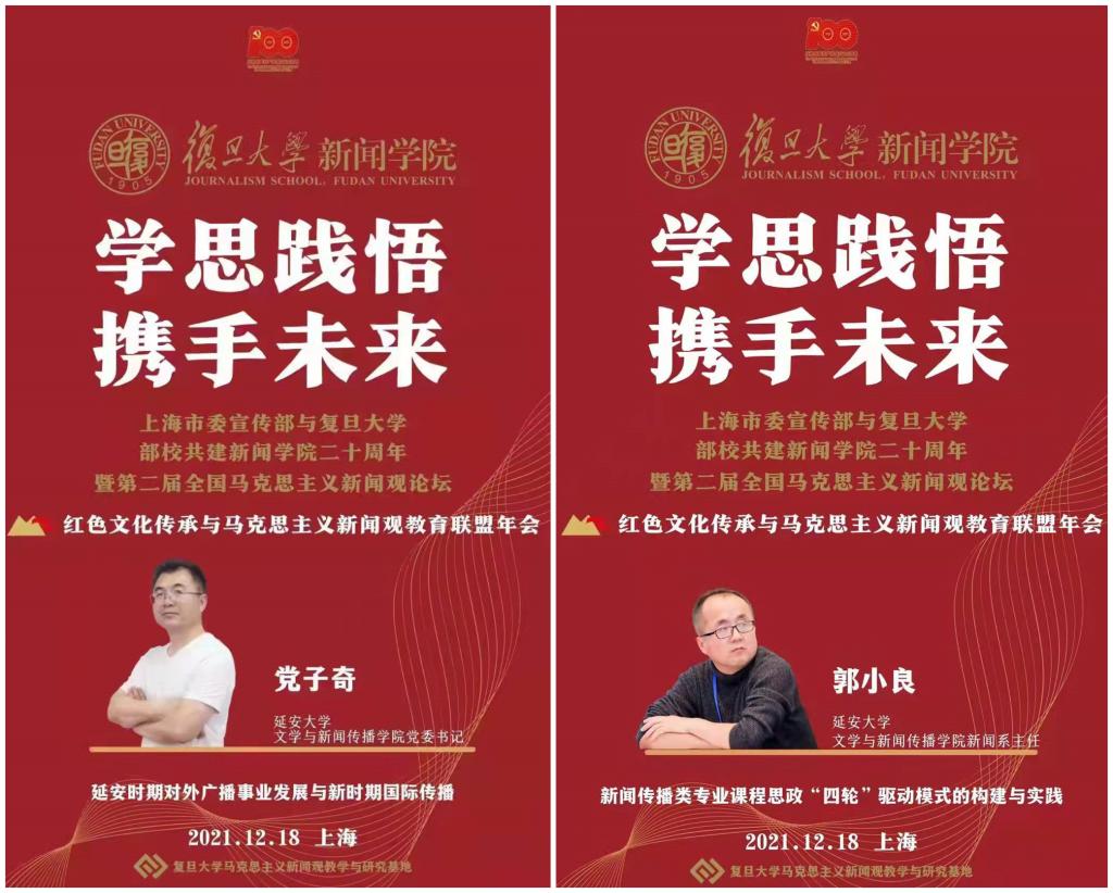 (本网讯)12月18日,上海市委宣传部与复旦大学部校共建新闻学院二十周年暨第二届全国马克思主义新闻观论坛在复旦大学召开。学院党委书记党子奇、新闻系主任郭小良参加会议,并在分论坛作学术分享。